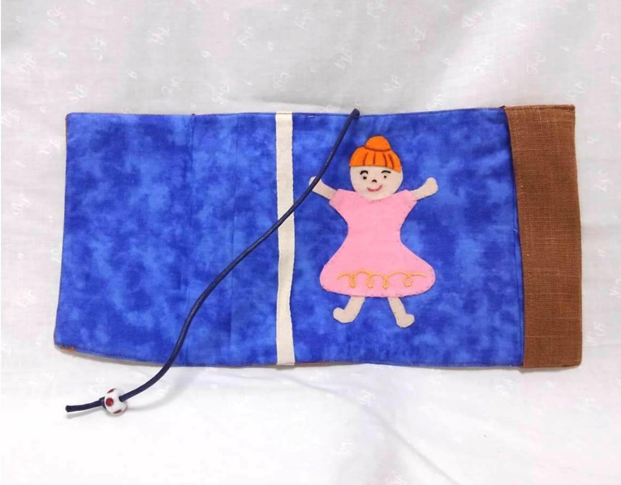 絵本から飛び出してきたような女の子のアップリケが特徴です。